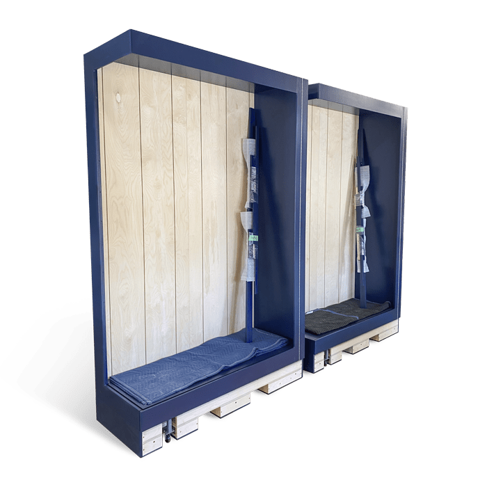 Cuesta Showcases feature a robust base designed to be compatible with a pallet jack. To move your case, simply remove the trim pieces, slide your pallet jack in the slots, and move it wherever you need it.