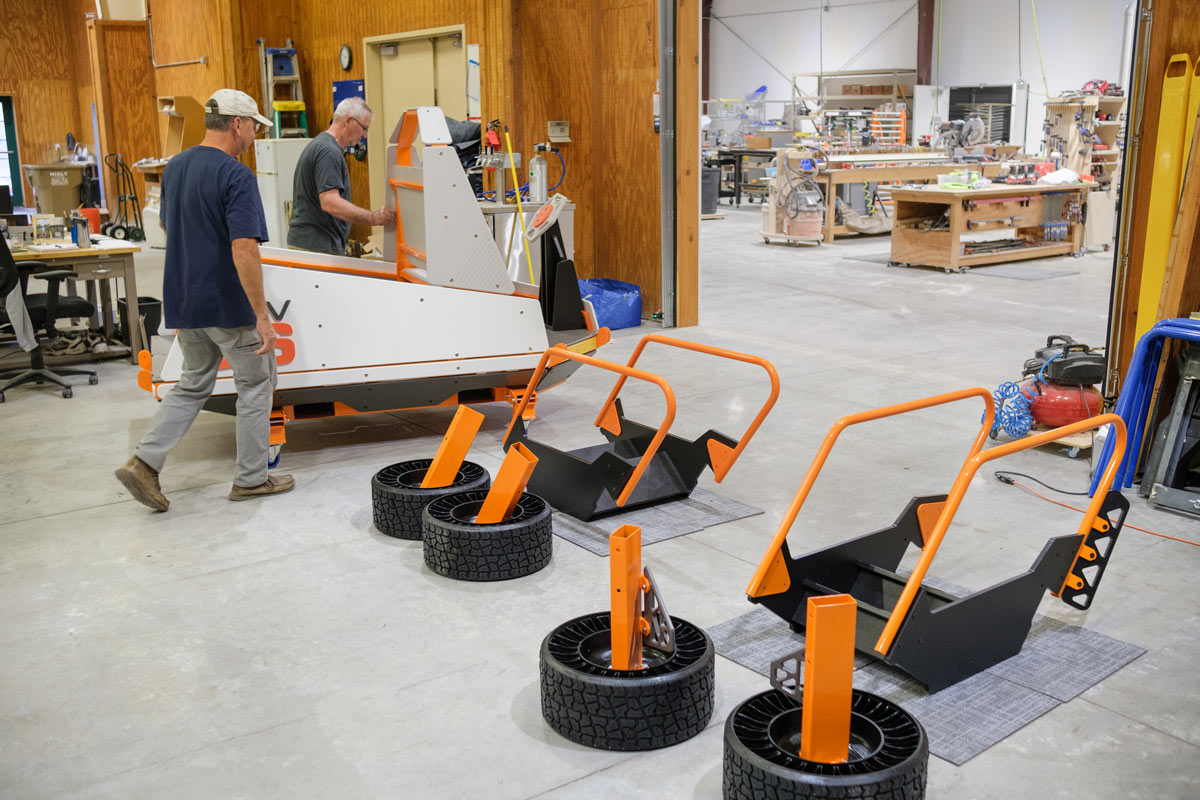 The Omaha Children's Museum commissioned us to design and build a custom interactive play structure for their Moon to Mars exhibit. The LTV-06 is geared toward children ages 3-5 and is designed to look like a modern lunar rover. The airless tires (Twheels) are stationary when the rover is displayed and are swapped with swivel wheels when the rover needs to be moved. We cut the various panels from HDPE, which is a material commonly used in playgrounds.